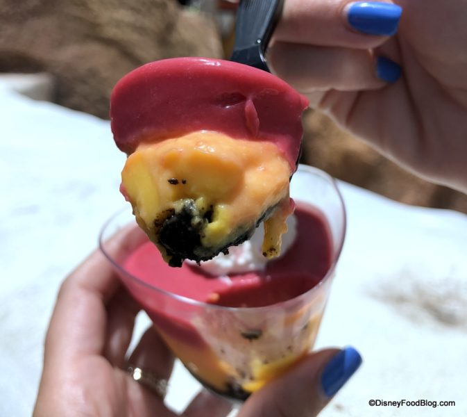 While we weren’t bowled over with the texture of the panna cotta, we thought the fruity flavors were wonderful together. We didn’t expect to like the cookie crumbles paired with the fruit, but we actually really enjoyed it. It’s not too sweet, which we definitely appreciated.
