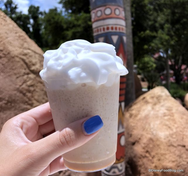 This drink is very small for the price ($11.25), but it’s absolutely delicious and refreshing since Amarula is pretty much the bee’s knees. We loved the whipped cream and the strong coconut flavor. If you don’t enjoy coconut, you may not love this treat, but we certainly did! The Savannah Smoothie is NOT eligible as a DDP snack credit.