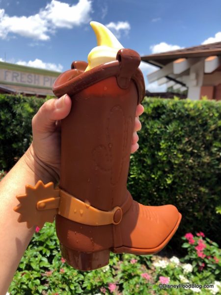 But this under-the-radar spot just got a lot more noticeable with the arrival of the Toy Story 4 Souvenir Boot Cup for your pineapple (on its own, or swirled with vanilla) Dole Whip Float!