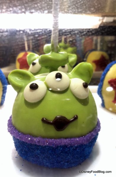 We love them both, but we are especially loving the Alien Caramel Apple! Each one is complete with a bright green hue, glittered sugar, and of course, three eyes. In case these look familiar, we previously spotted Alien Caramel Apples at Bing Bong’s Sweet Stuff in Disney California Adventure!