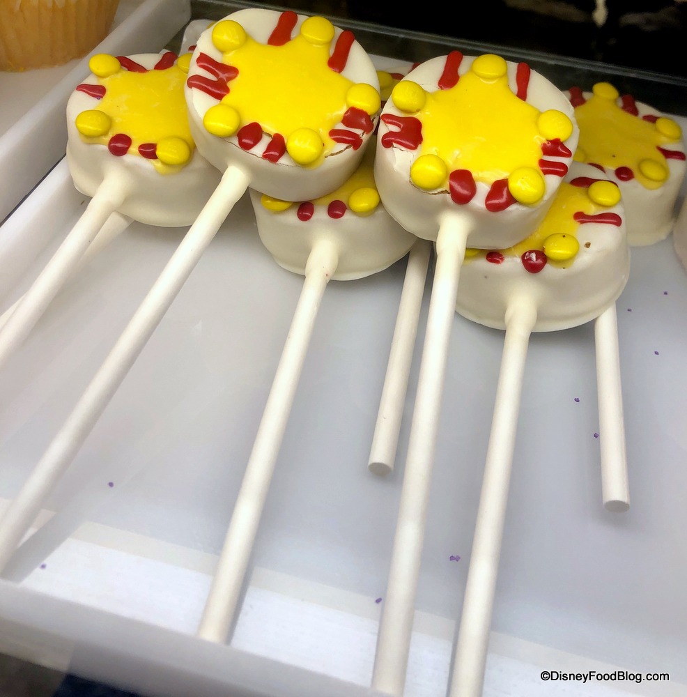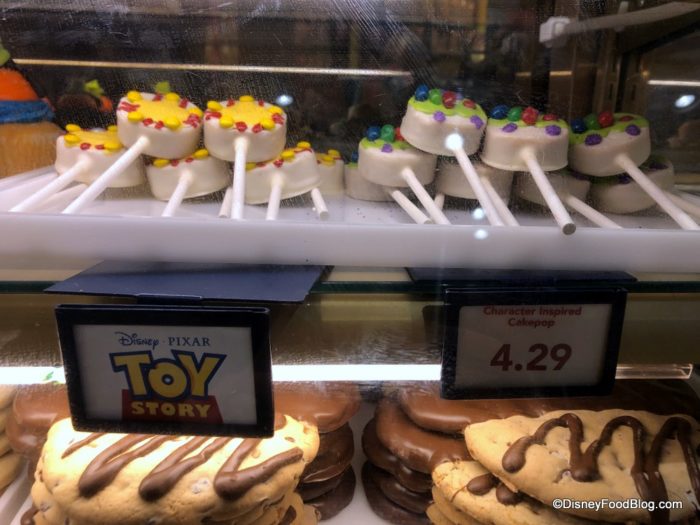 Once we pulled ourselves away from the mouthwatering caramel apples (never a small feat), we noticed some Toy Story cake pops. One is inspired by Woody’s sheriff badge, while the other is based on our favorite Space Ranger, Buzz Lightyear!