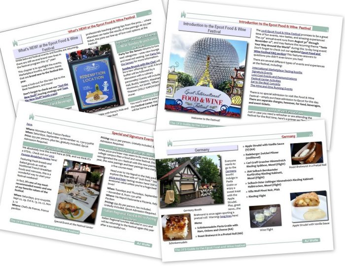 The DFB Guide to Epcot’s International Food and Wine Festival is simply a must for everyone from casual to hardcore Festival attendees. We pack the Guide with everything you need to know — literally everything — including full indexes of Festival offerings (including food, wine, cocktails, beer, and chef appearances) and the DFB Guide exclusive FULL daily schedule!