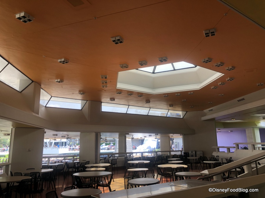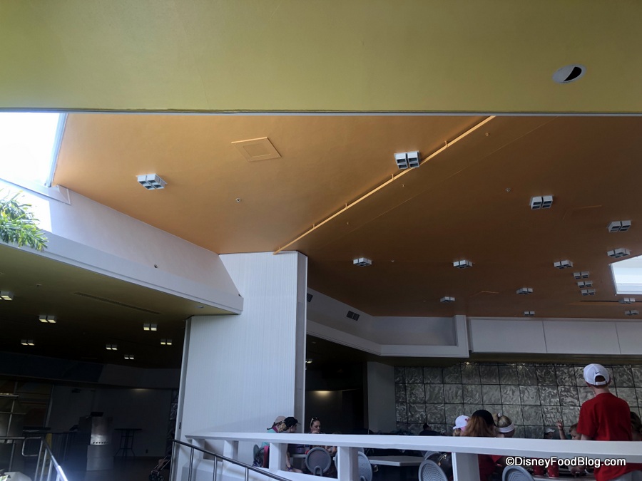 is now sporting the updated Tomorrowland orange and yellow color scheme thanks to some fresh coats of paint on the ceiling.