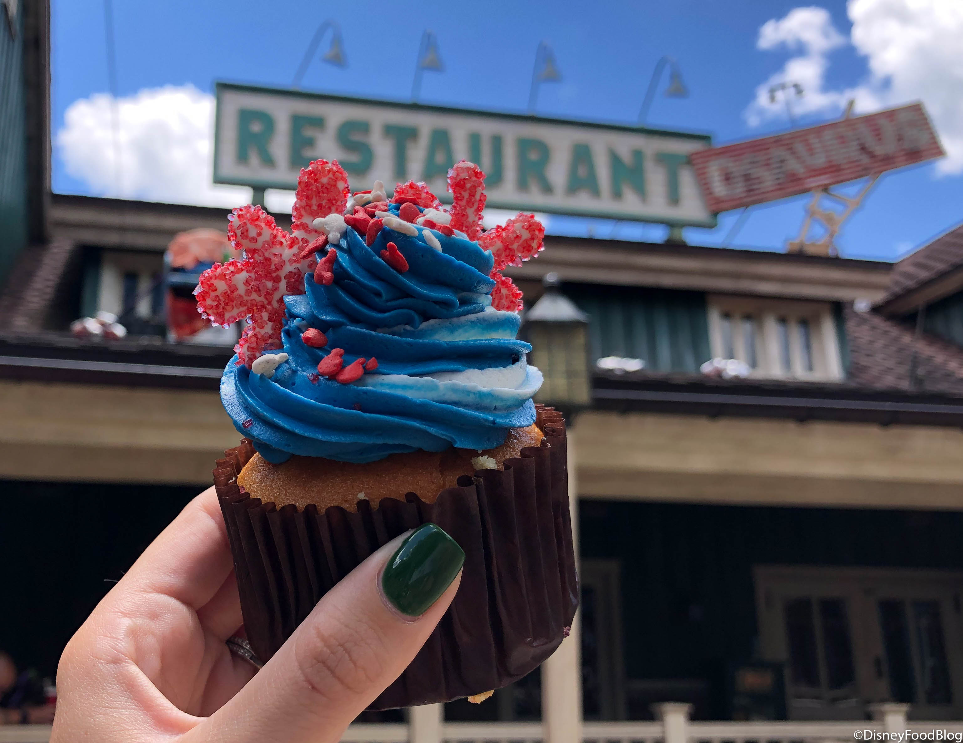 And Disney World is celebrating with patriotic treats like the Fourth of July Cupcake from All Star Music and the new cupcake we spotted today at Restaurantosaurus in Animal Kingdom.