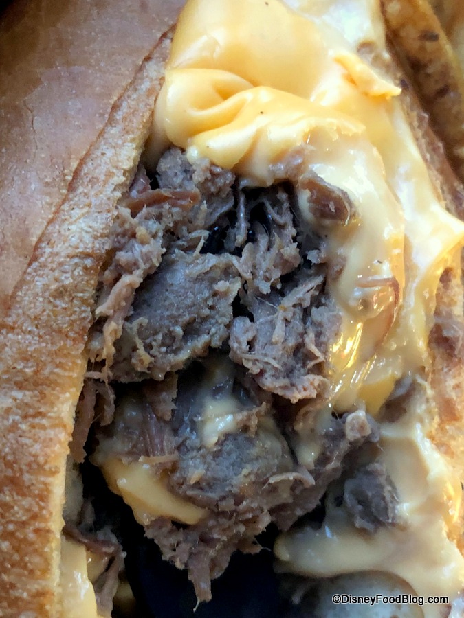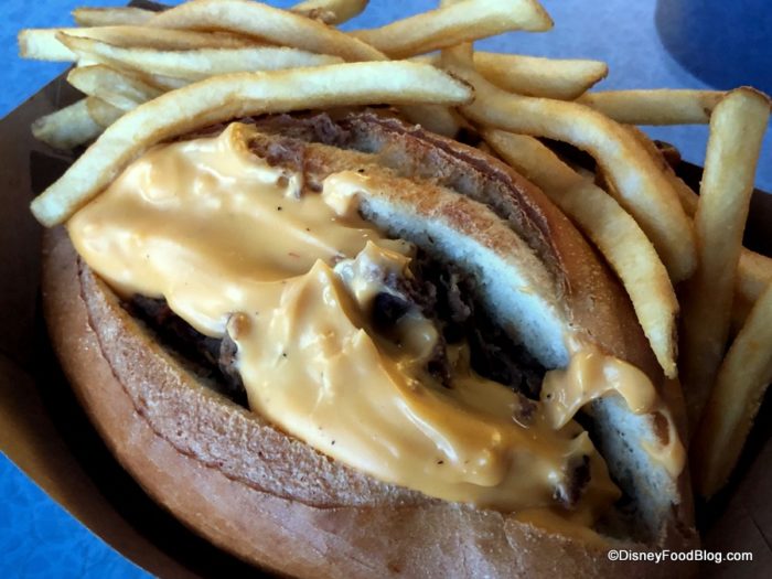 It’s time to mix things that shouldn’t be mixed: electricity and umbrellas. We’re back at Epcot’s Electric Umbrella to share the new Brisket Sandwich, a kids’ flatbread option, and a cup of beer cheese. (J/K, we don’t share beer cheese.)