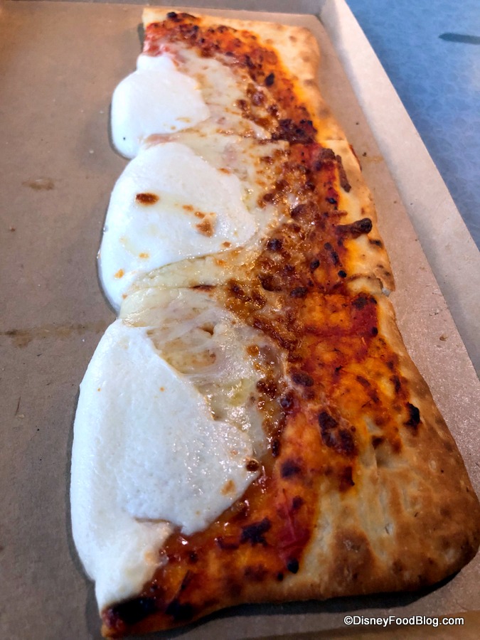 We went with the kids’ Three-Cheese Flatbread which is half of an adult three-cheese flatbread and topped with some blobs (presumably circular in a previous life) of mozzarella.