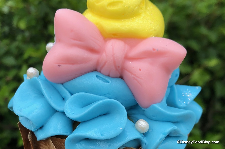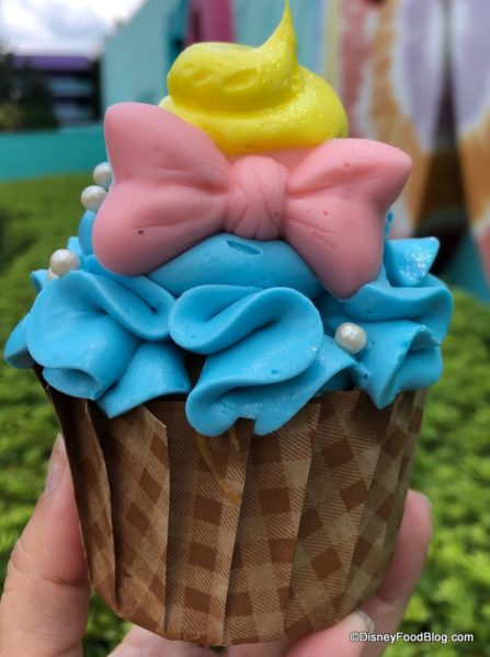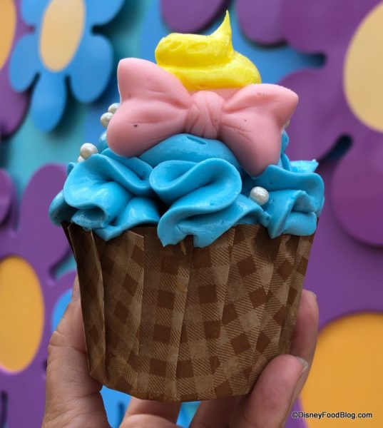 We tried a Bo Peep-inspired cupcake at Port Orleans — Riverside last month, but with coconut-flavored frosting and a white chocolate bow, it definitely brought out a different side of Bo Peep. We enjoyed that flavor combination more, but this sugar-bomb cloaked in cotton candy frosting is likely to be a big hit with the kiddos!