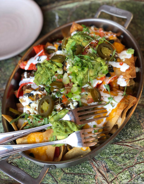 Appetizers include the Double-Baked Beef Nachos ($21) which are a great size and would easily suffice as a meal if you’re not too famished (or you’re gonna be jumping in that pool soon after dining!). These are made with tortilla chips, melted cheese, bacon lardons, black beans, scallions, slivered jalapeño pepper, cilantro, queso fresco, guacamole, and crema. There was nothing too spectacular about these; they’re standard nachos that you could get at most dining locations, though they’re lovelier to look at than most nachos.