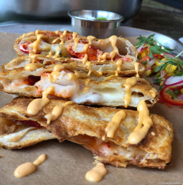Maine Lobster Quesadillas ($23) are flour tortillas with Monterey Jack cheese, bits of lobster, queso fresco, and caramelized onions with spicy mayo drizzled on top. The lobster tasted fresh, and even with the other ingredients, we could taste the shellfish. We’re giving these a 12/10. Yup, they’re that AMAZING!!