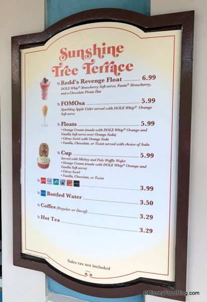 A Cast Member told us Redd’s Revenge was added to the menu two days ago, and they weren’t sure how long it will stick around. If you want to try Redd’s Revenge for yourself, head over to Sunshine Tree Terrace in Adventureland! You can purchase the float for $6.99 or a Disney Dining Plan snack credit (a fabulous value, I might add).