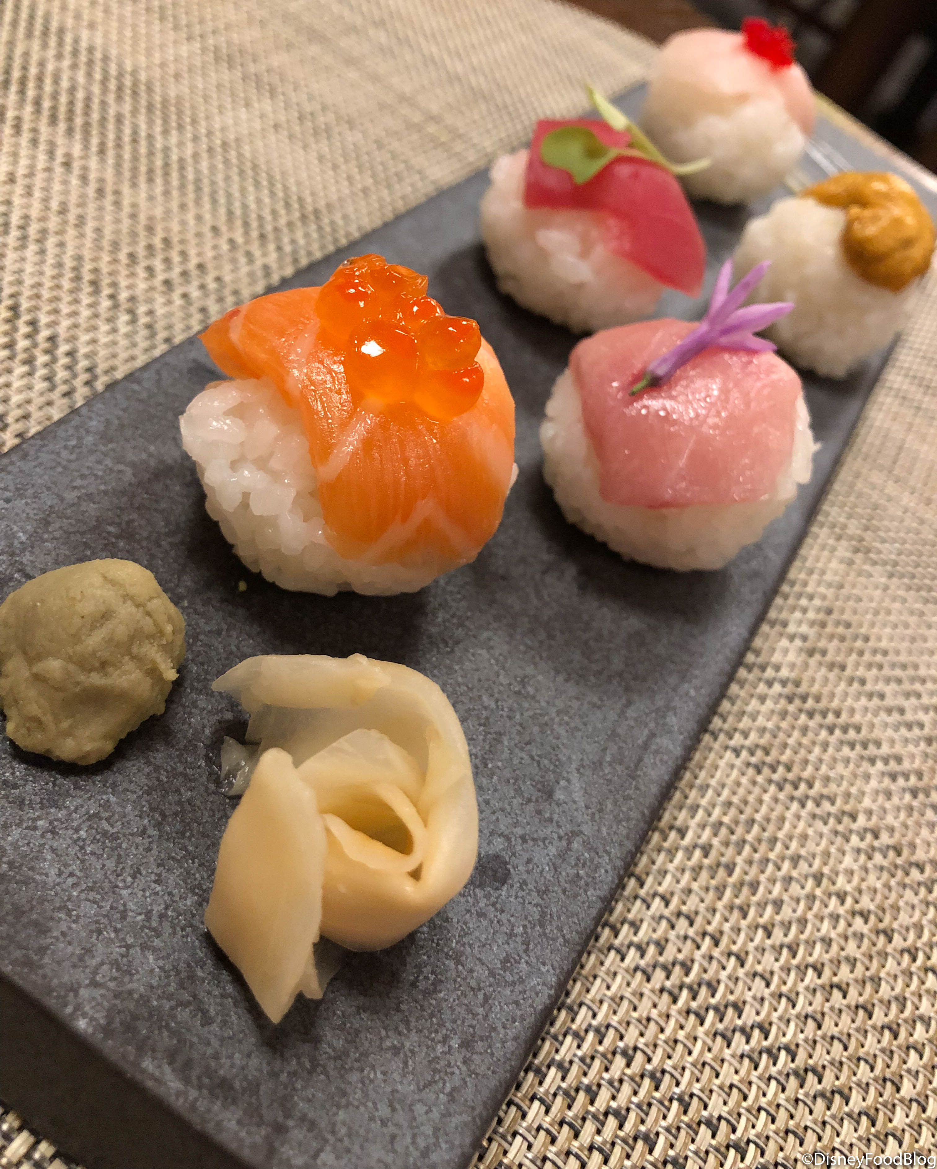This included the the Temari Sushi, which offered (bottom to top) Salmon, Toro, Tuna, Sea Urchin, and Yellow Tail.
