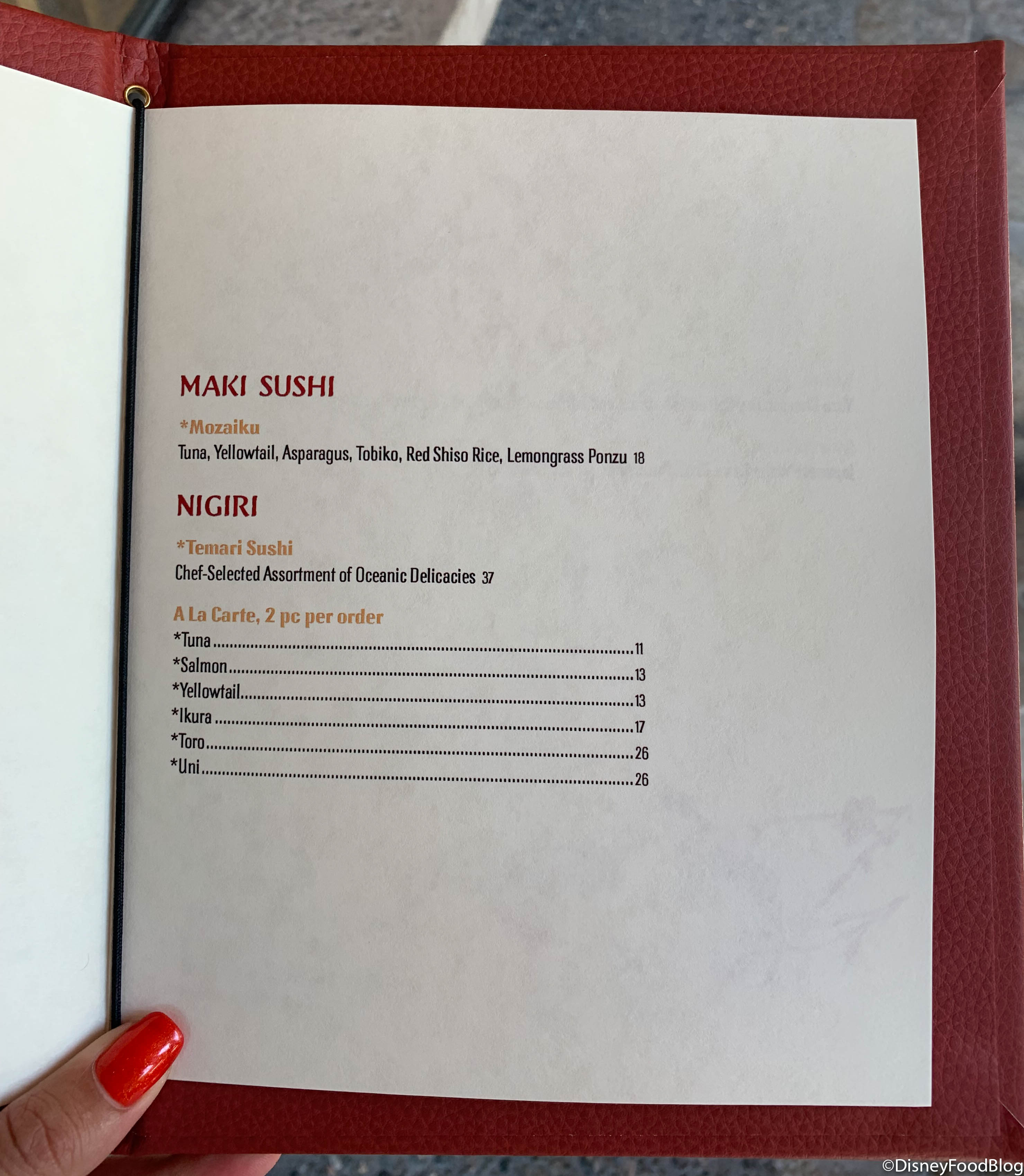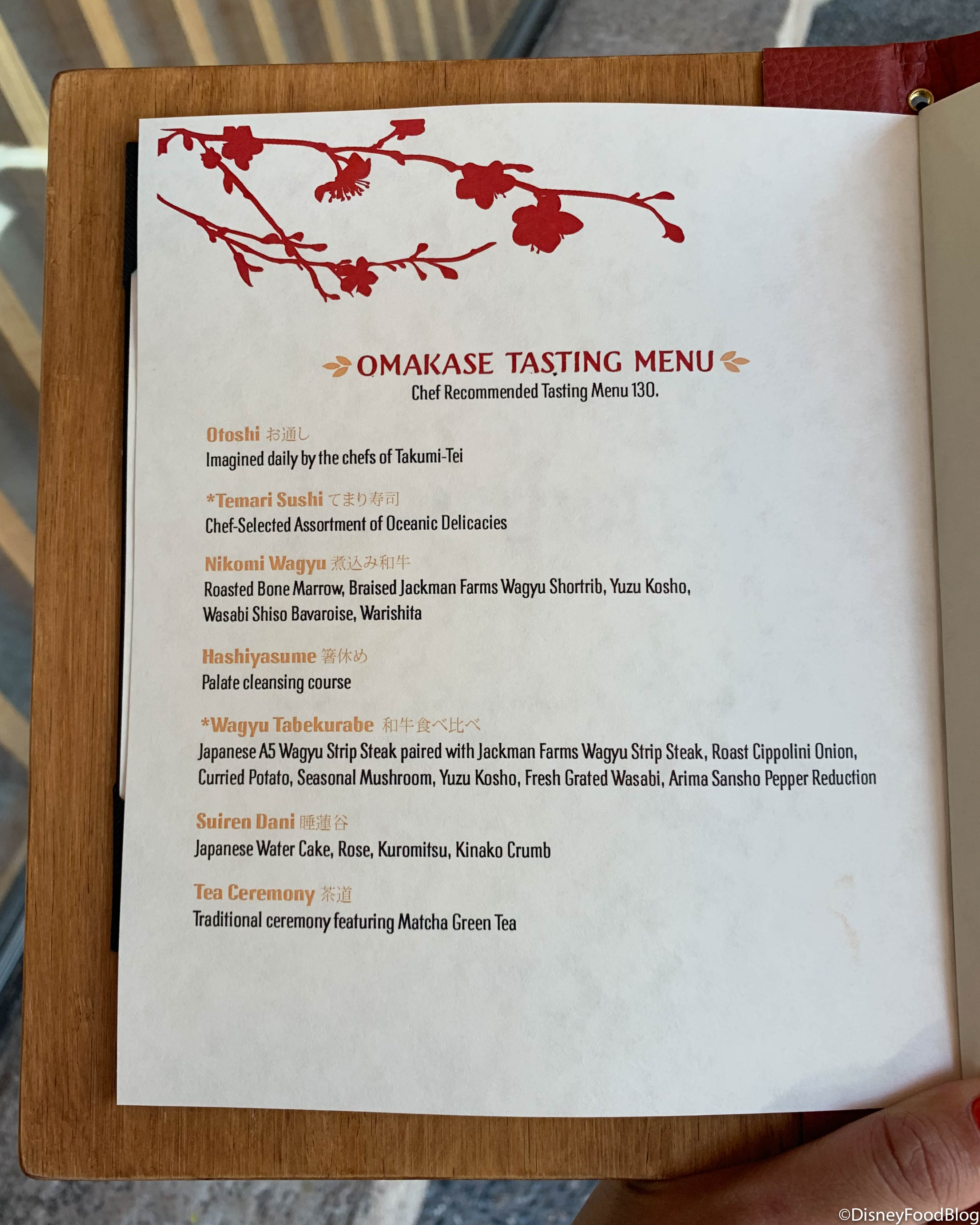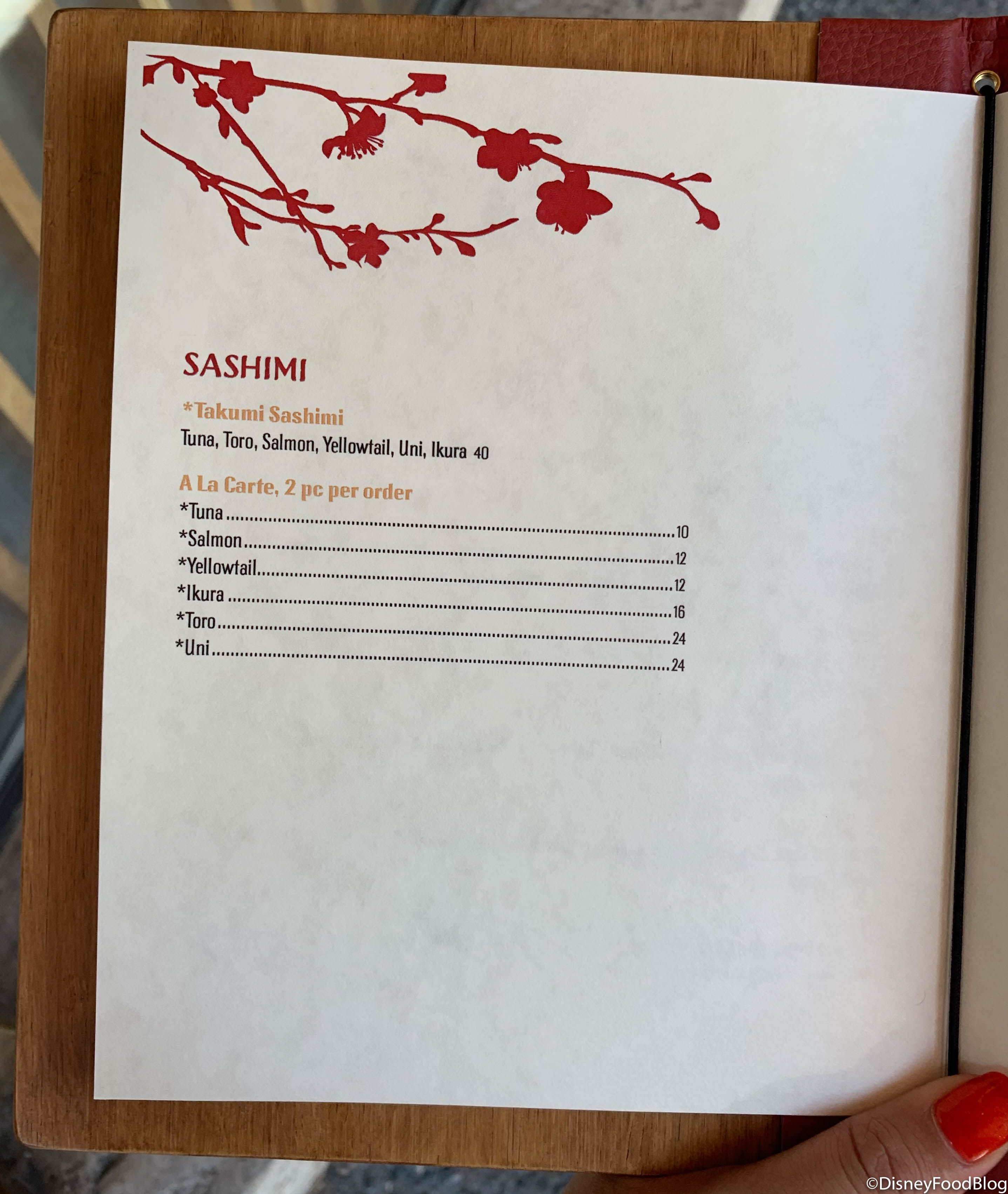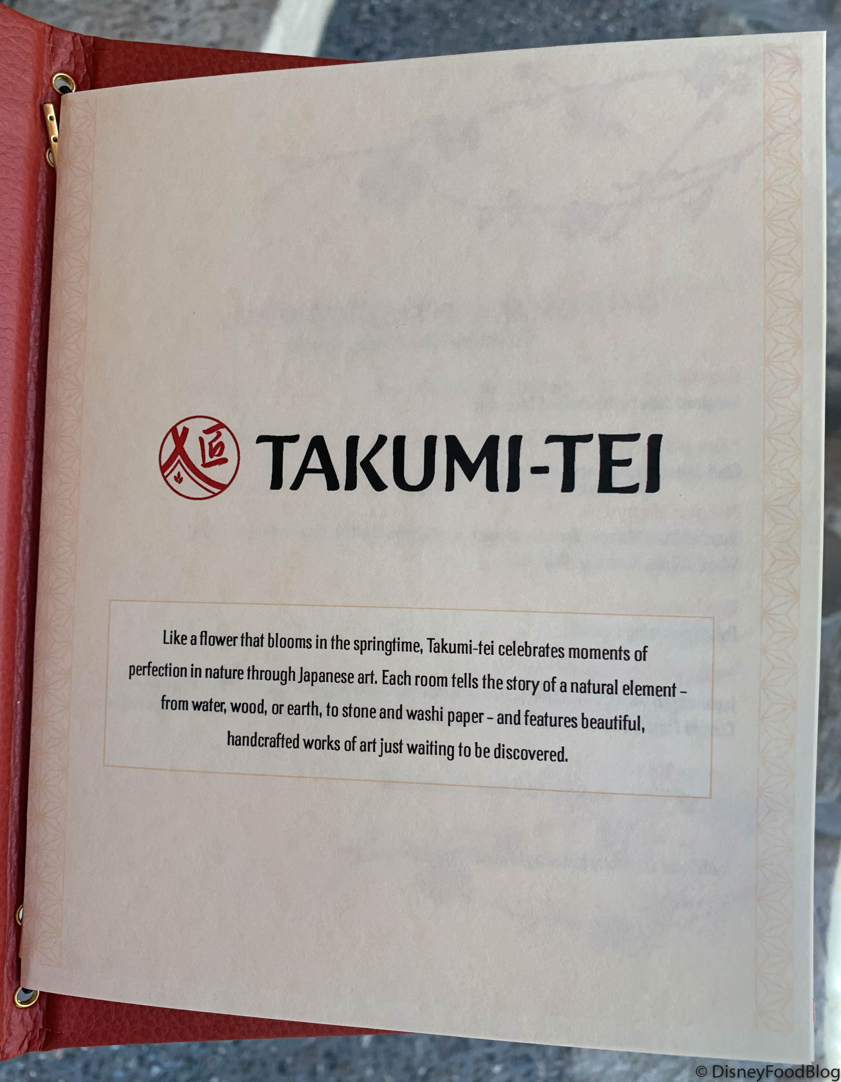A friend and I were at Epcot a couple of weeks ago. We gave a little thought about trying Takumi-Tei, but the menu is designed for beef eaters and offers little for those who prefer seafood. I was willing to pay the price, but not for food that I did not want to eat.