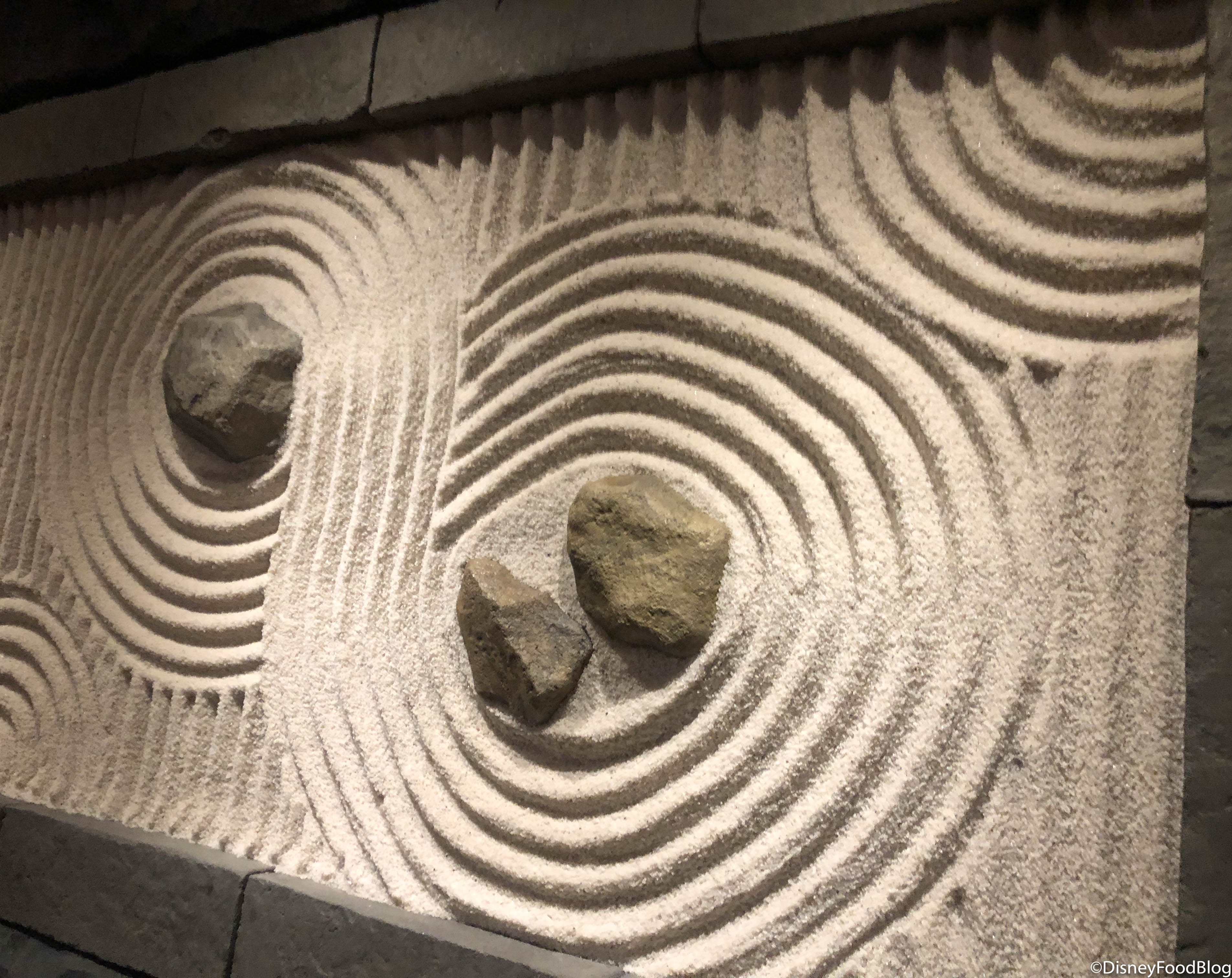 The stone room’s main focal point is the large Japanese Zen Garden art piece.