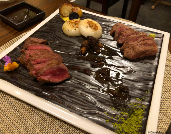 Next, we ordered the “Gift of Ranch” — or Makiba no Magumi. This was Jackman Farms Wagyu Strip Steak, Purple Sweet Potato, Fresh Wasabi, Maitake Mushroom, adn Matcha Maldon.