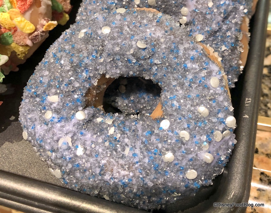 Over at Wilderness Lodge’s Roaring Fork, we spotted two sweet offerings for July 4th. This donut was loaded with crunchy, sugary bits that remind us of mining for gemstones!