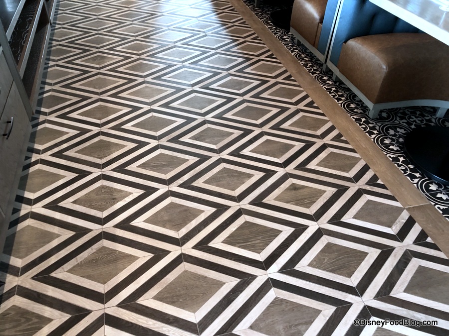 Speaking of which, just as we often remind readers to look up for ceiling details, at Toledo, you’ll want to look down, too! Flooring design varies throughout the restaurant, with repeating geometric patterns mixing with Moorish floral tiles.