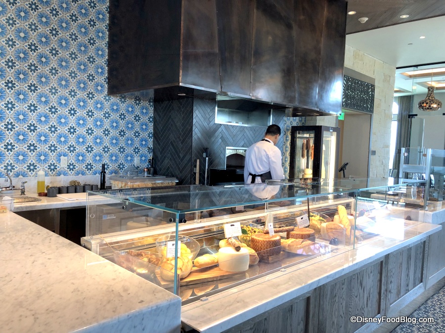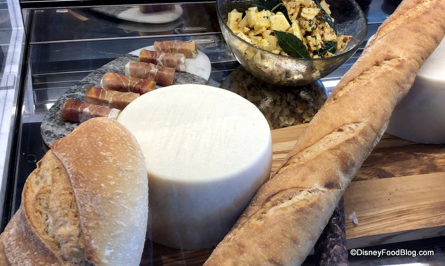 On display in front of the Tapas kitchen were various meats, cheeses, and breads.
