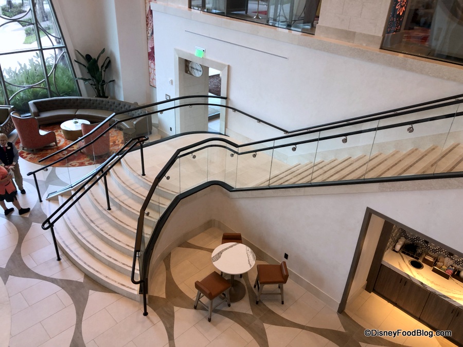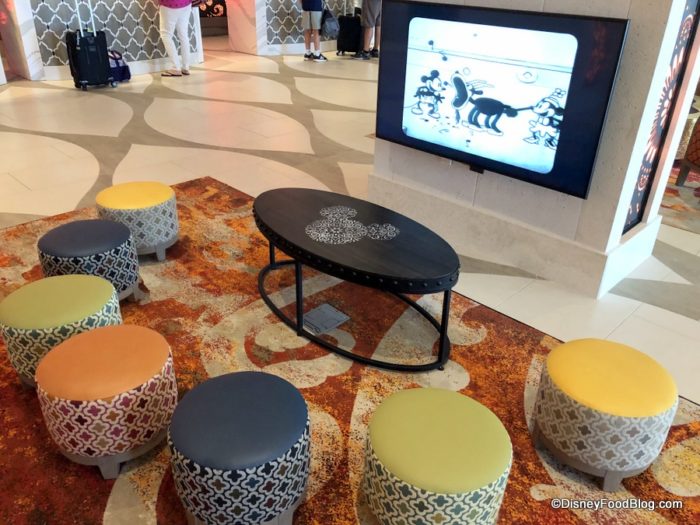 The main lobby is on a higher floor than Barcelona Lounge. You’ll check in on this floor, then descend down to the lobby bar and lounge area if you want to check it out. This separation is nice for the families checking in so they’re not wading through a lively bar crowd during their first experience at the resort.