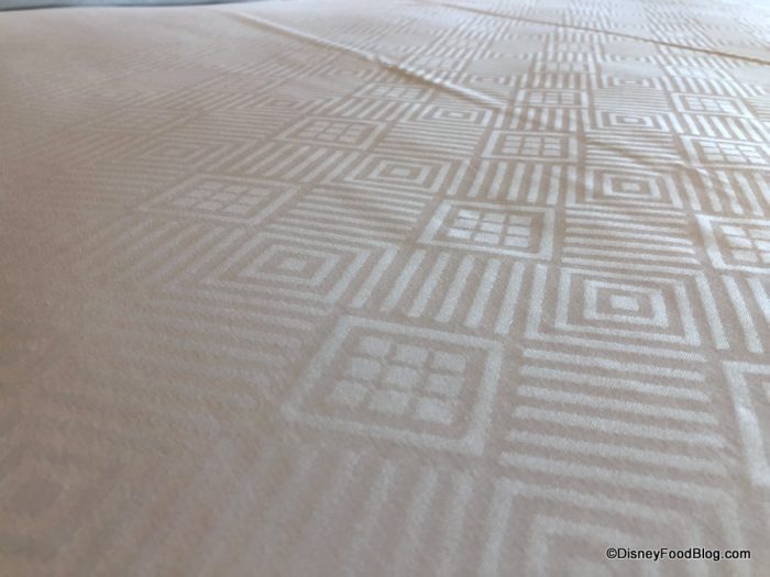 Interestingly, I’ve seen some duvet covers with Mickeys on them in other resort rooms, so it really does look like Gran Destino is de-disneyfying these rooms considerably.