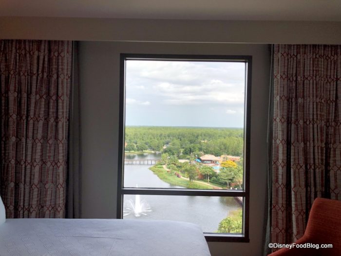 Don’t forget the room’s best feature, though. In this shot out the window, you can see the resort’s main Dig Site pool area.