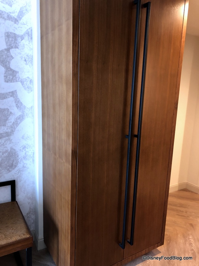 Note that we’re not seeing a LOT of hidden Mickey touches in these rooms, but your sliding door may have a friendly face…
