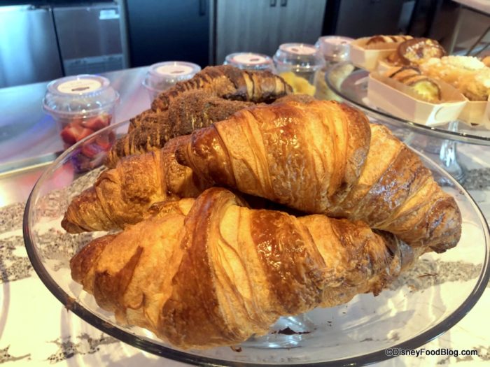 Now that we’re hydrated, let’s eat! According to the cast members working at Barcelona Lounge this morning, all breakfast items are Disney Dining Plan snack credit eligible except for the “Plates”. We’ll show you those first.