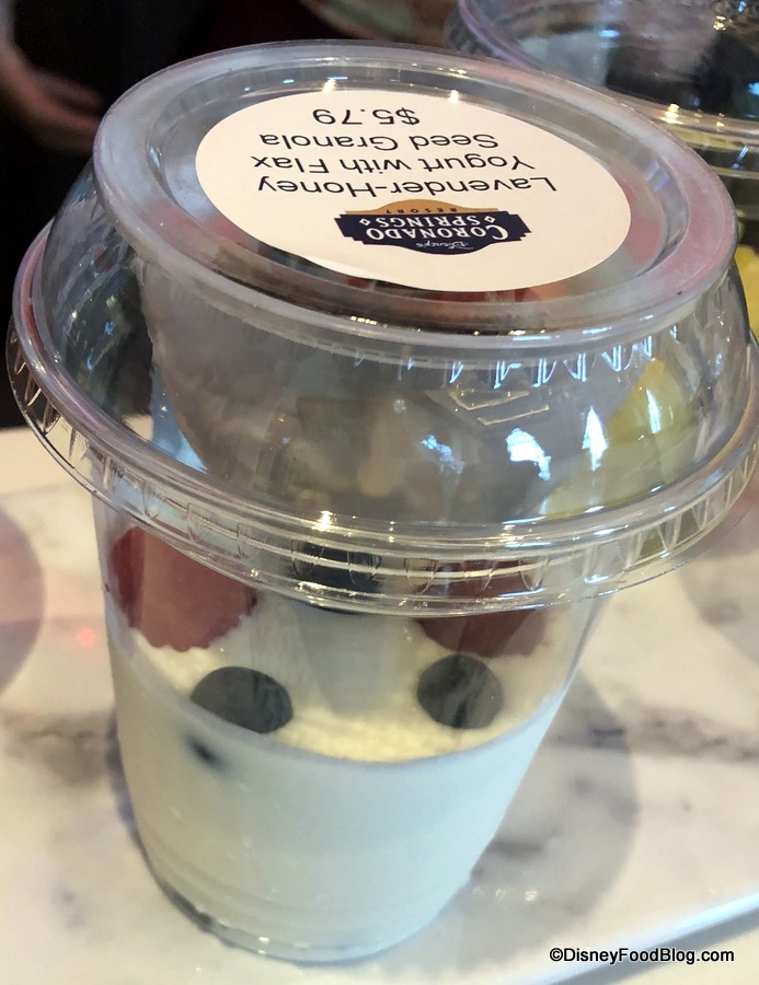 The yogurt parfait is officially called Lavender-Honey Yogurt with Flax Seed Granola. The granola is kept separate from the yogurt so you don’t have to worry about it getting soggy.