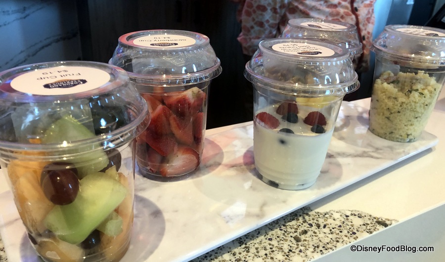 Cups filled with healthy options are available, too. These vary in price from $4.19 for fruit cups to $6.99 for the Couscous and Citrus Salad.