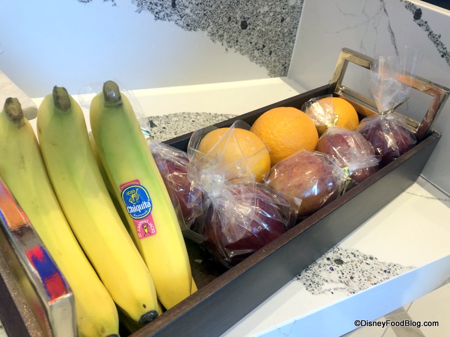 There’s also fresh fruit. On our visit, bananas, apples, and navel oranges were available.