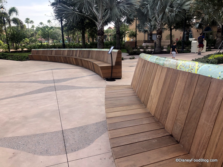 But don’t miss out on this hidden gem: Lago Dorado-side seating on these stunning wood and mosaic-backed benches, located just outside Barcelona Lounge.