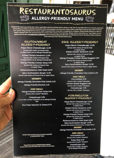 Not too much to note here! But, we did spot allergy menus available for guests to peruse for Restaurantosaurus and Satu’li Canteen.