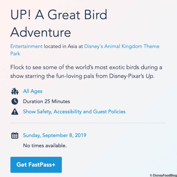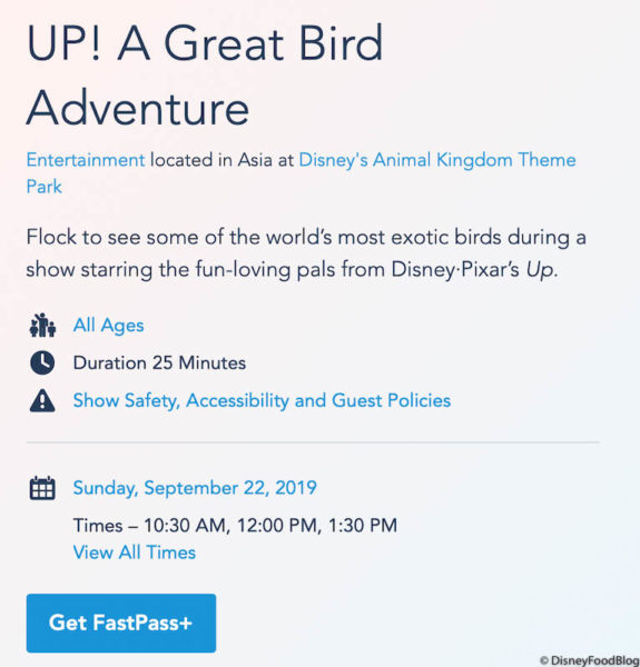 Speaking of Kevin, according to the Disney World website calendar it looks like UP! A Great Bird Adventure will be closed this fall from September 8 – 21, 2019.