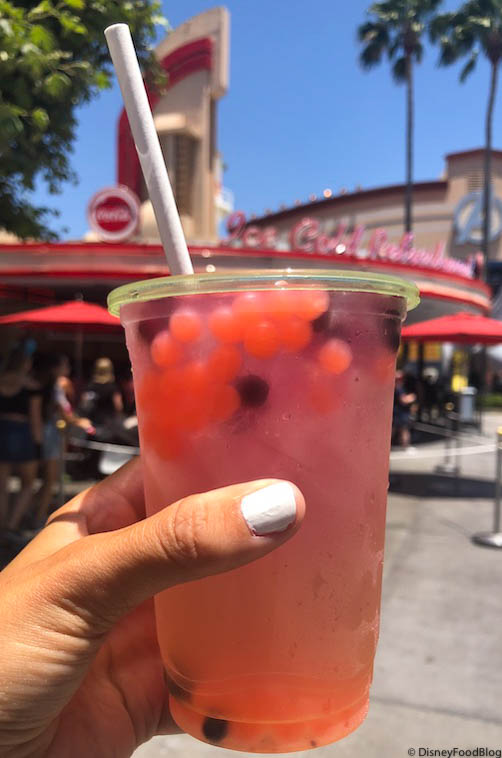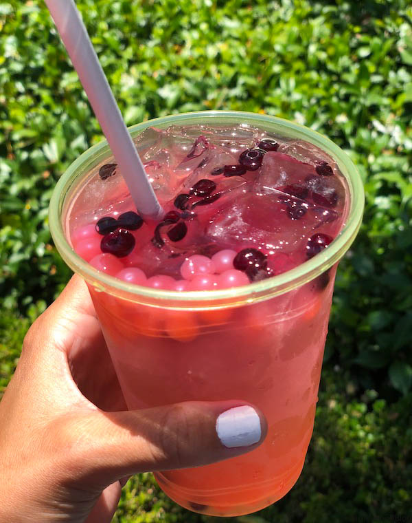 We found the Firecracker Mojito ($13.74) at Hollywood Lounge in DCA’s Hollywood Land. It’s a mojito with blueberry and strawberry POPPING pearls!