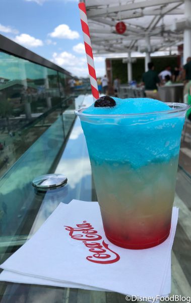 The combination of the Fanta Blue Icee, Simply Lemonade, Evan Williams Peach, and Evan Williams Cherry is a perfect way to cool down in the Orlando heat!