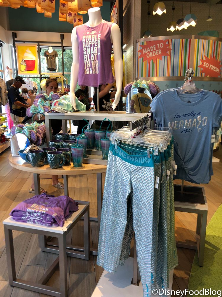 Magic Bands, bracelets, and ears — The Little Mermaid is extremely popular right now, considering the 30th anniversary of the film this year! (But peep that typo on the purple vest!)