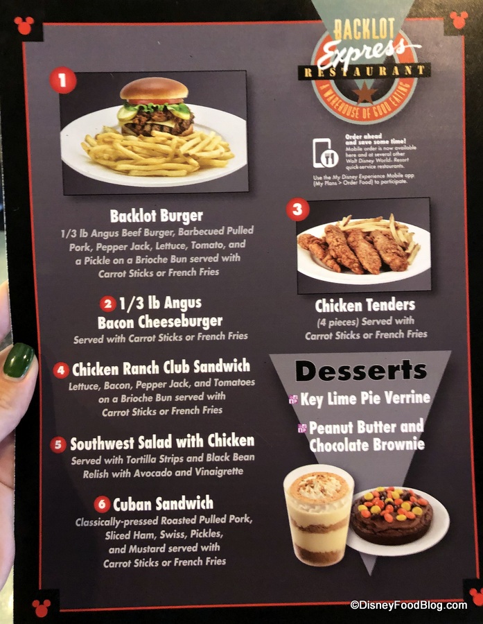 Over at Backlot Express we noticed a handful of menu changes. The Chicken Ranch Club Sandwich has replaced the California Chicken Club Sandwich; and Chicken Breast Strips are now listed as Chicken Tenders.