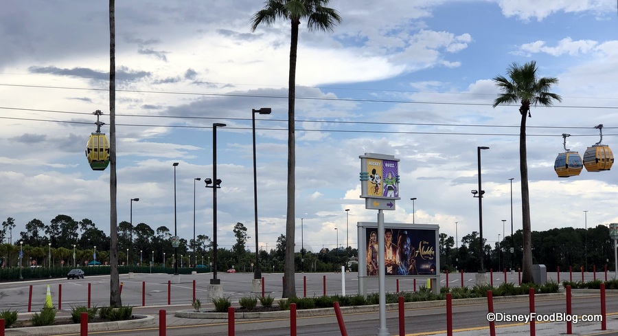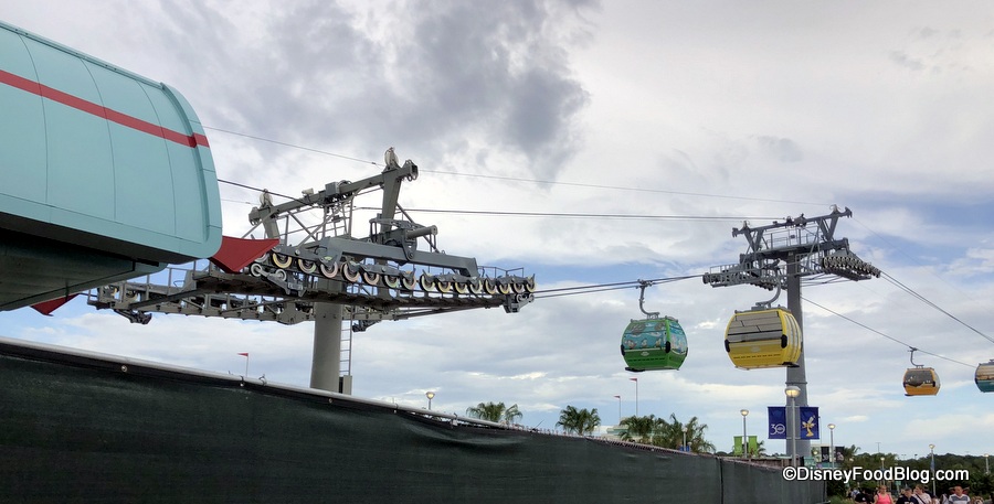 On our last visit to Disney’s Hollywood Studios, the gondolas were absent from the Skyliner station, but on this day, they were back! We only spotted a few out on the lines, but there were several inside the station.