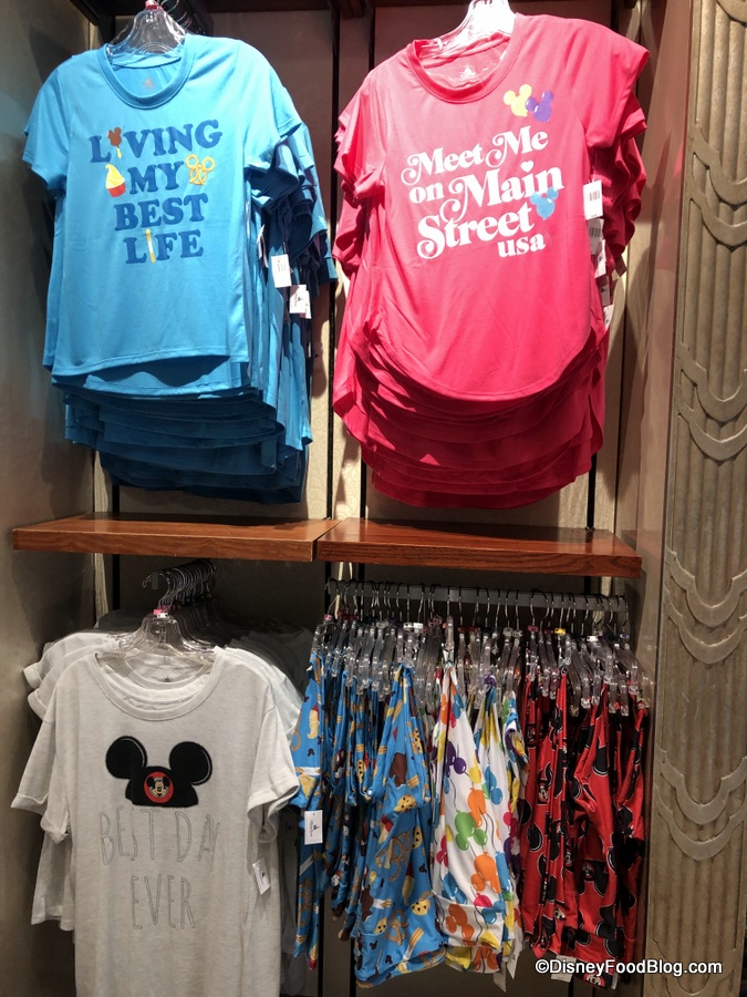 The funky leggings we’ve seen elsewhere in the World are also at Hollywood Studios. This display at Once Upon a Time includes leggings and coordinating tee shirts.