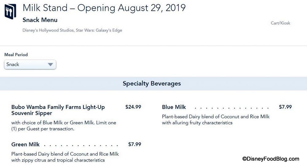 Well, today, we have MORE Galaxy’s Edge news for you! Disney has released the menu for Hollywood Studios’ Milk Stand!