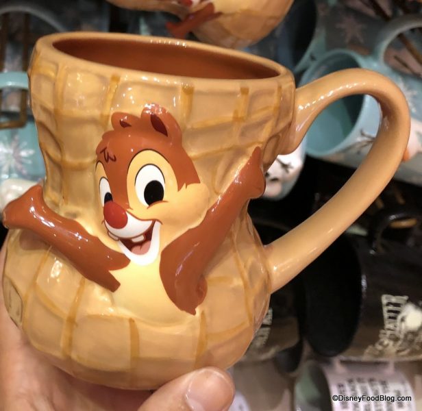 All the mugs we’ve seen so far are $16.99, but this next one… shaped like a peanut and featuring Chip ‘n’ Dale… is $19.99. Must be that hourglass figure.