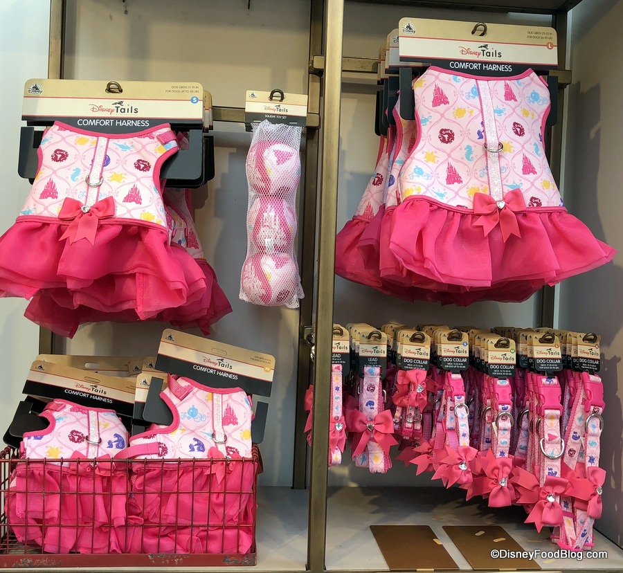 The Disney at Home store has a display of Pink Castle Disney Tails gear. From balls to harnesses to leads to collars, there’s something for every diva dog!