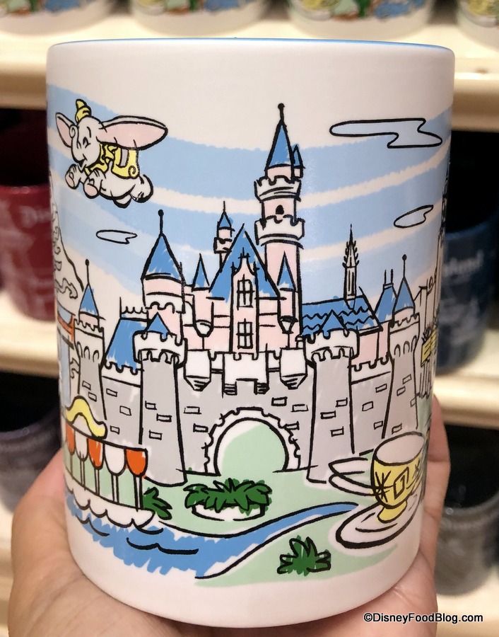 The Disneyland Resort mug features lots of icons, including Sleeping Beauty Castle and Dumbo!