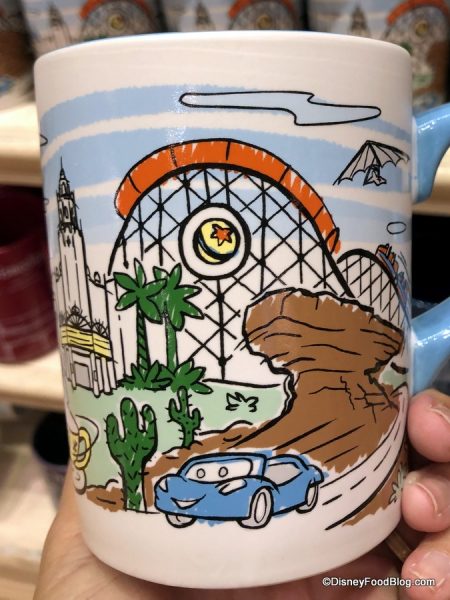 California Adventure Park isn’t left out! The Incredicoaster, Cars Land, and Carthay Circle are prominent features on this side of the mug.