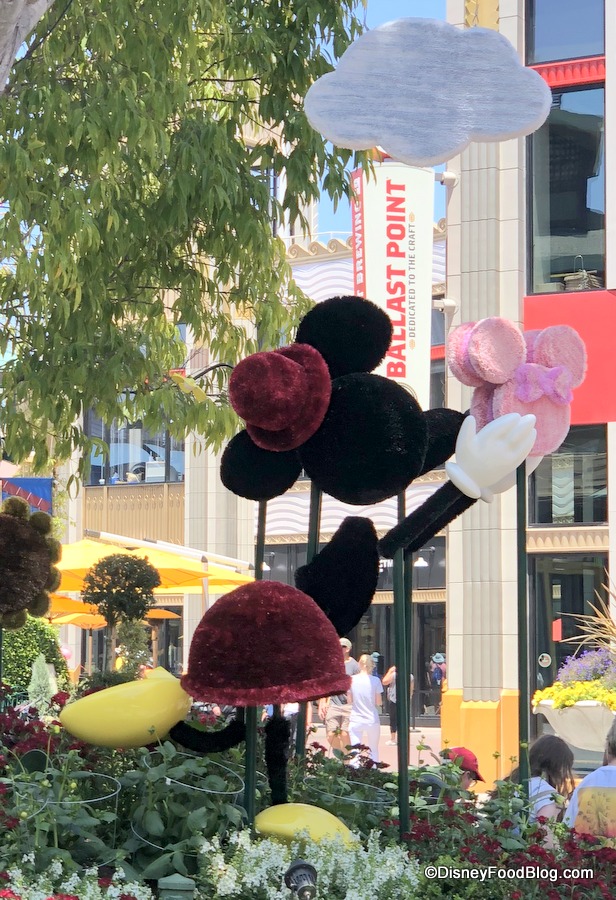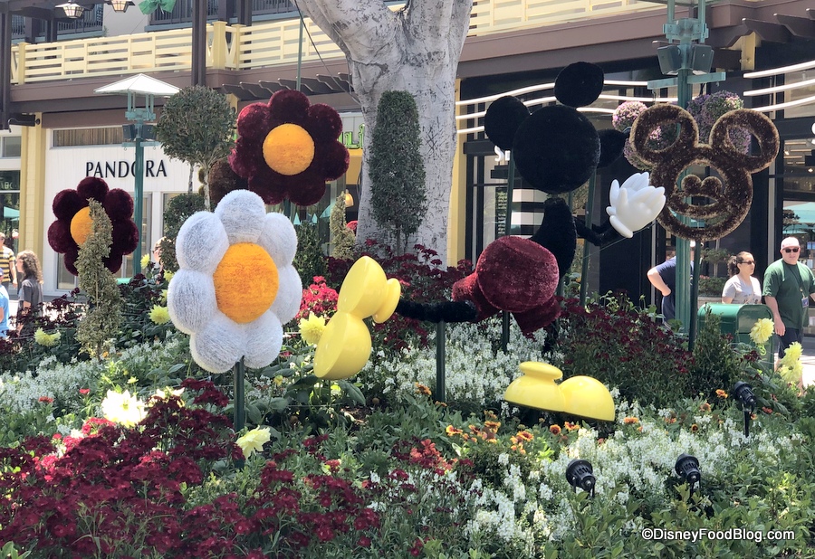 In Downtown Disney, we had to snap a few shots of these fun flower art displays! Some of our favorite Disney friends have been deconstructed and arranged so that if you find just the right angle, you can put them back together again! 😉