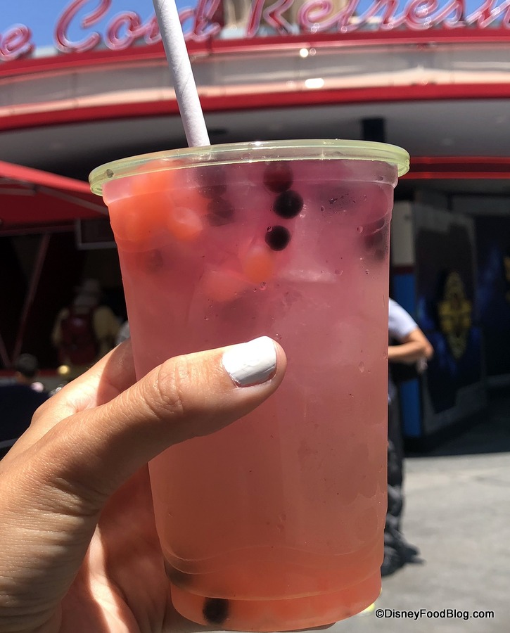 We found the drink to be super refreshing — and we loved the sensation of the popping pearls with their little burst of flavor, too! See our full review here!