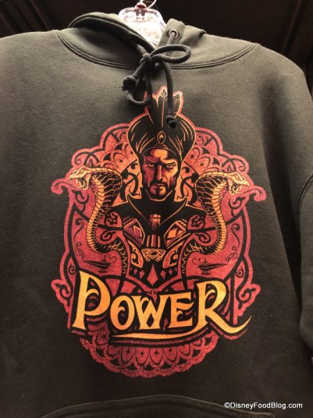 has some fun Aladdin-themed merch. This power hoodie features the movie’s antagonist, Jafar.