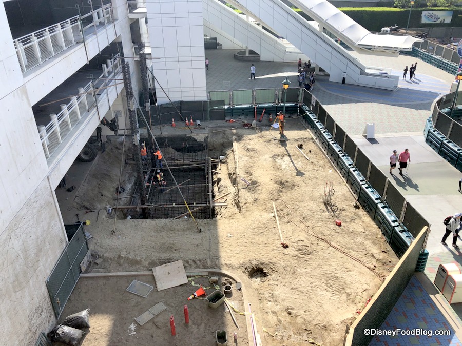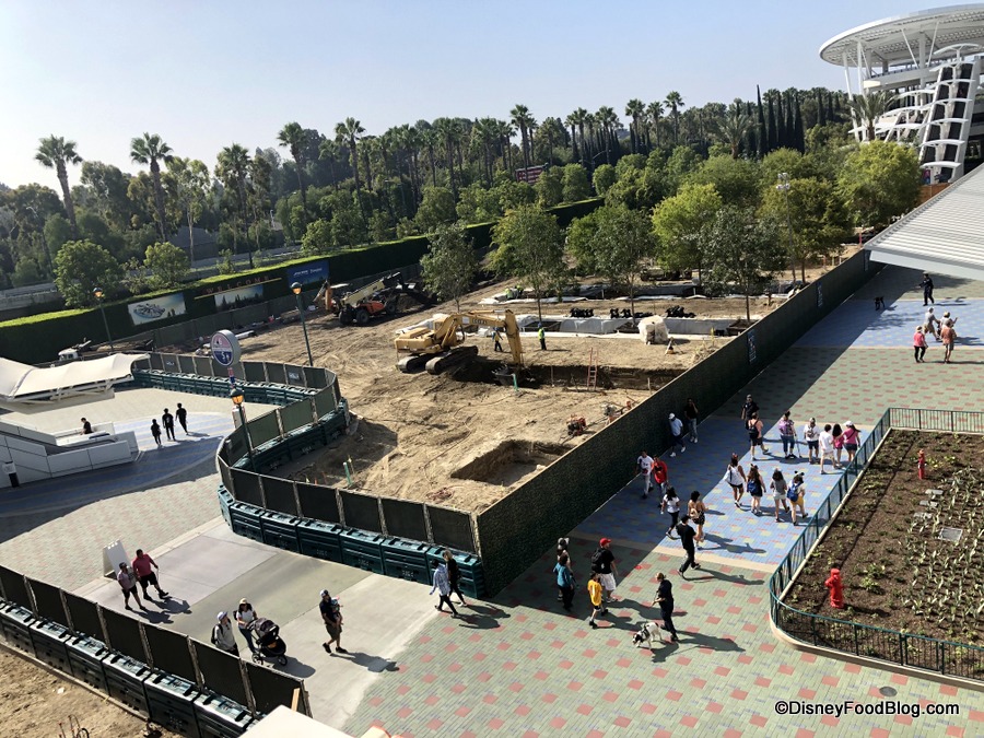 Surface construction continues in the area of the Mickey & Pals and Pixar Pals parking structures. As you can see, foot traffic is flowing around this expansive construction site.