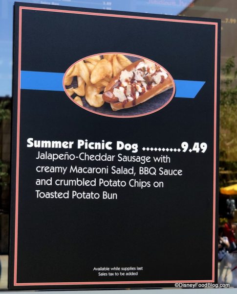 Award Wieners has a funky Summer Picnic Dog right now. It’s topped with creamy macaroni salad (!!), BBQ sauce, and crumbled potato chips.