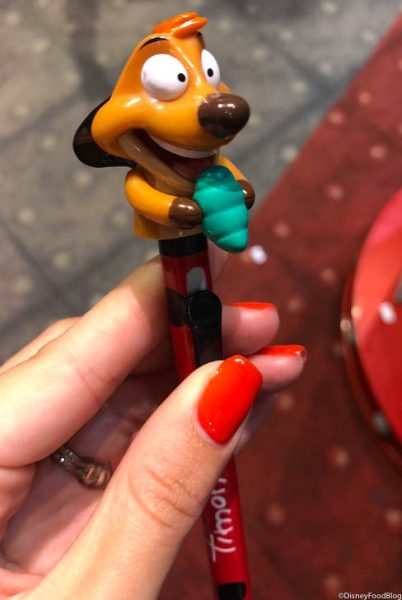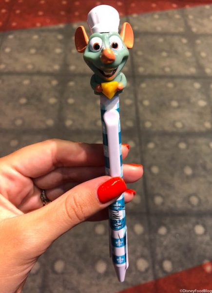 We found these hungry little guys at Mouse Gear in Epcot. Each pen features the character’s autograph and a snack that pertains to that particular character’s film or personality.