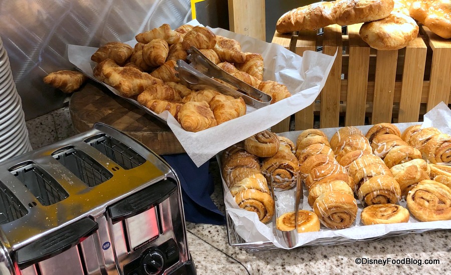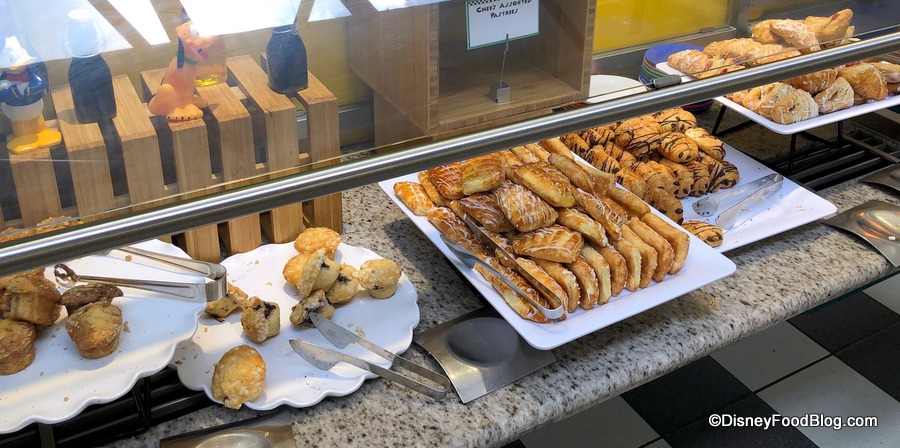 The Assorted Pastries section over by the dessert buffet is packed with breakfast staples.